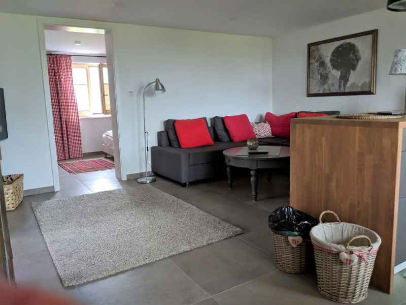 Die Wohnung verfügt über einen separaten Eingang direkt vom Parkplatz aus. „Bachrauschen“ ist die einzige Wohnung, die wir auch wir auch an Mieter mit Hunden vermieten.