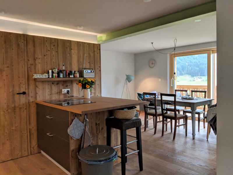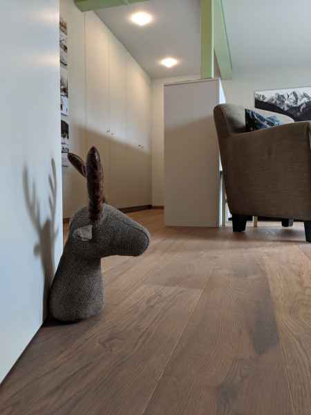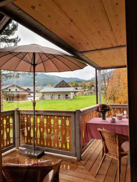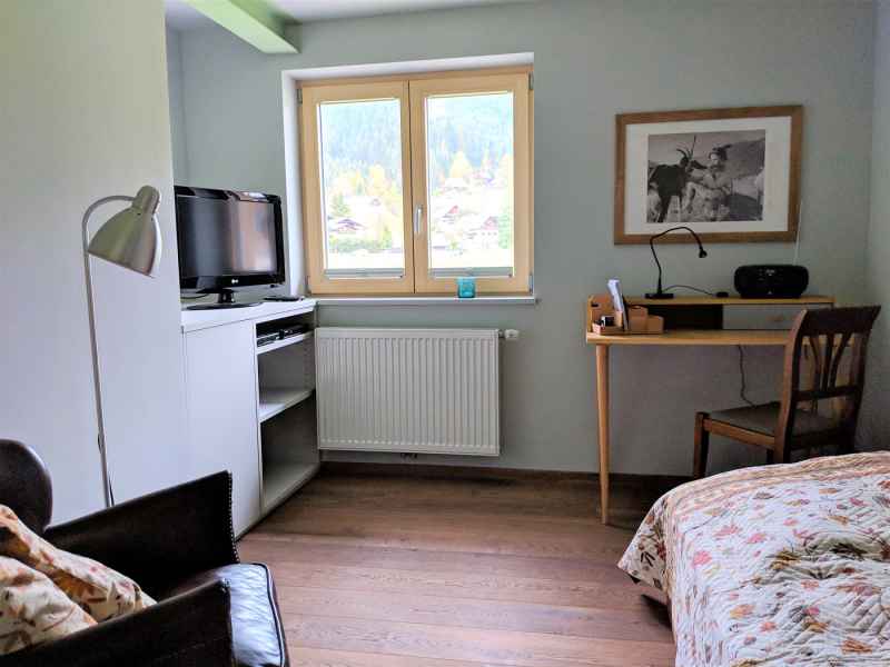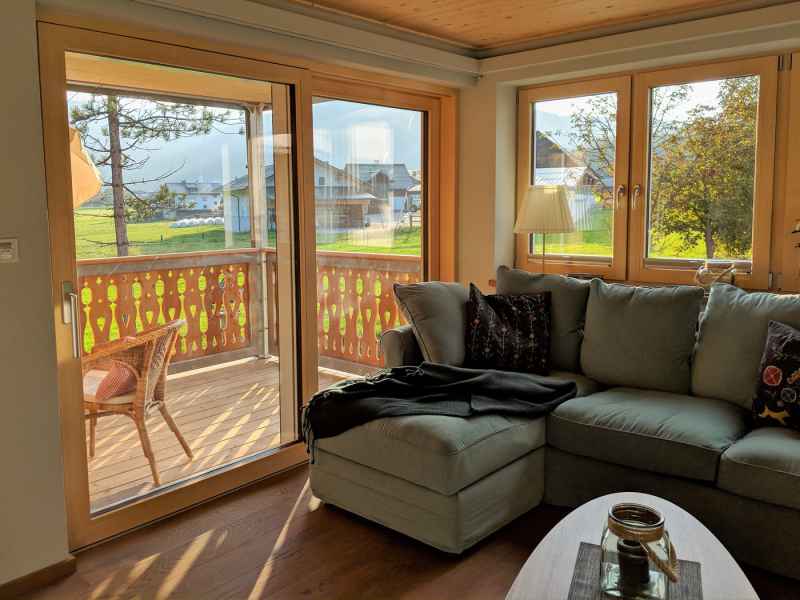 When you enjoy the view out of our extra-large windows from the first floor across the meadows to the Gosau Mountains you will understand how this apartment got its name. 120sqm, three bedrooms, two separate bathrooms